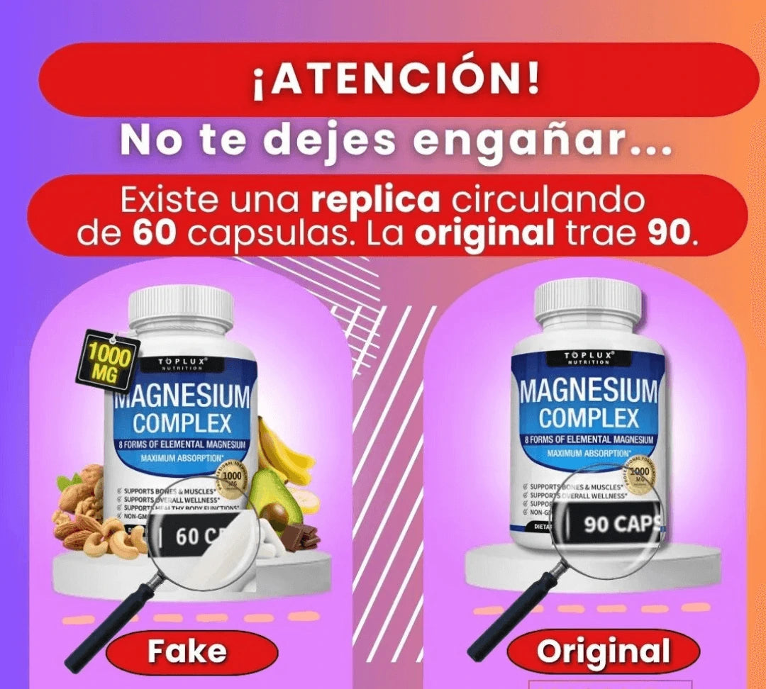 Con Magnesium Complex de Toplux Nutrition recibirás la cantidad adecuada de magnesio elemental con máxima absorción , apoyando tu salud física y mental de manera integral.